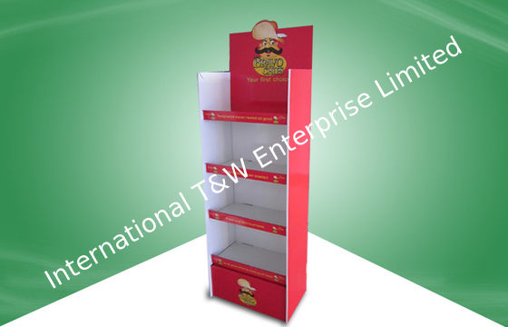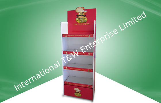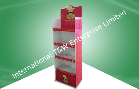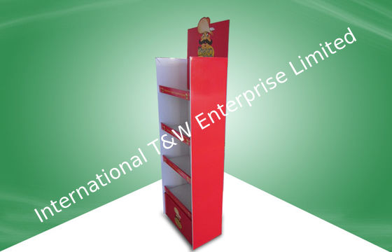 Red Four Shelf Cardboard Free Standing Display Units PP Lamination for Snack