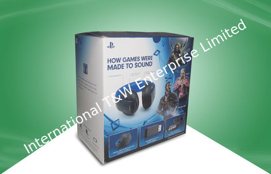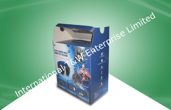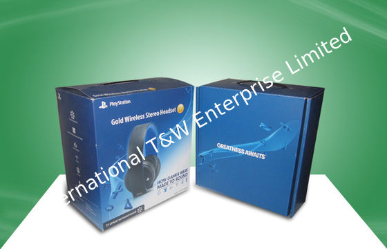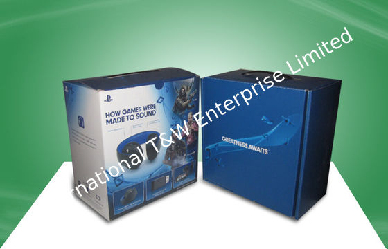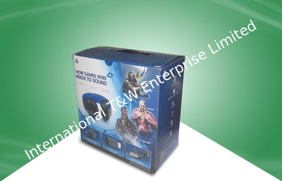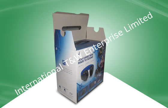 Blue Strong Corrugated Paper Packaging Boxes With Plastic Handle For Ear - phone